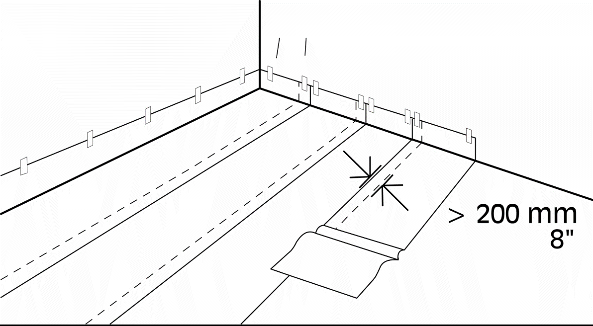 Se l'umidità residua è superiore al 75 % di umidità relativa, tutte le sovrapposizioni devono essere fissate con nastro adesivo largo 50 mm.