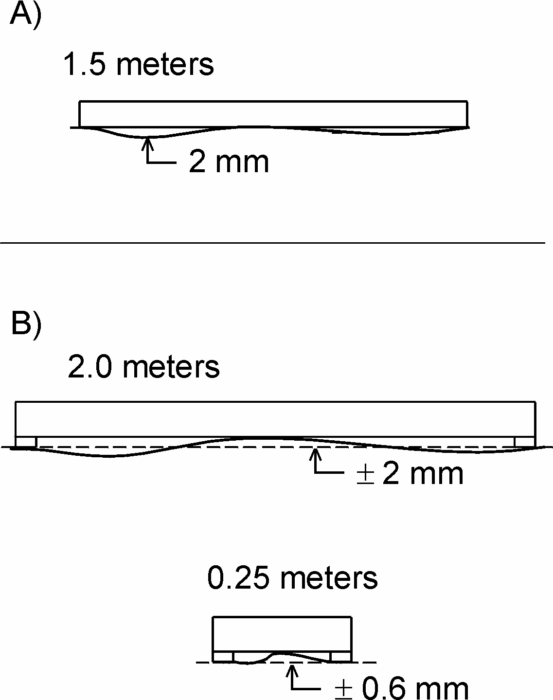 Prima di posare gli strati intermedi è necessario livellare il sottofondo/massetto in modo che qualsiasi discrepanza con la planarità non contrasti con le caratteristiche di uno dei due metodi sotto indicati, vedi Fig. 2.