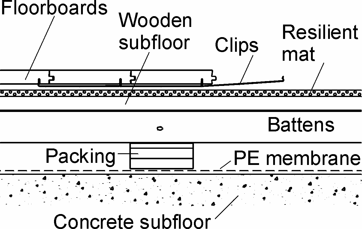 Le irregolarità più consistenti sui pavimenti in calcestruzzo possono essere eliminate grazie all'utilizzo di un prodotto autolivellante. Il livellamento dei sottofondi in legno può essere ottenuto mediante carteggiatura o installazione di fogli di cartone duro abbinati eventualmente a un riempitivo, oppure mediante posa di cartongesso fibroso. La scheda tecnica Junckers indica i requisiti di planarità dei sottofondi con uno scarto massimo di 2 mm sotto uno strato di 1,5 m. (UK: 3mm sotto uno strato in piano di 2m).