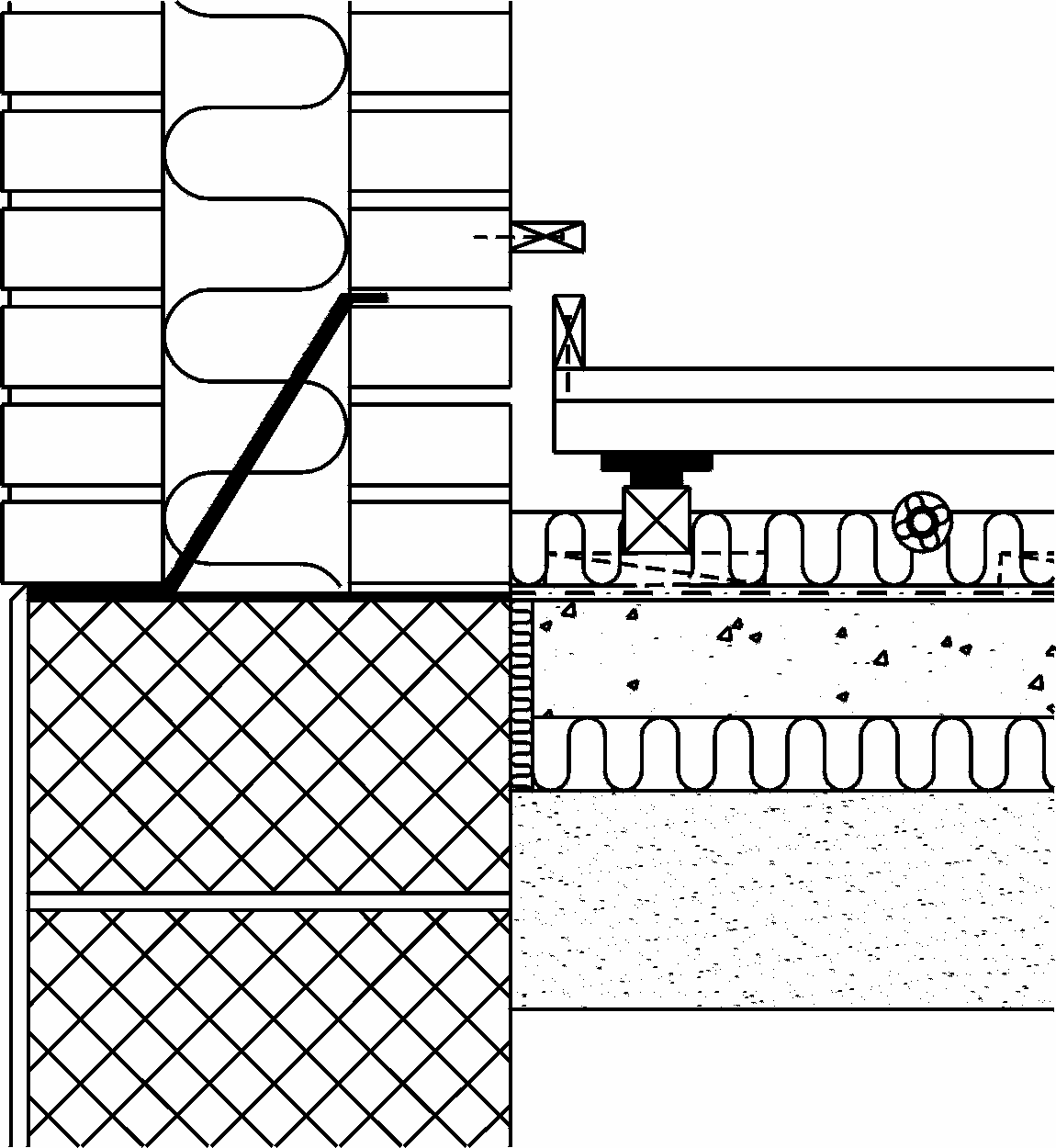Il giunto di dilatazione minimo in corrispondenza di pareti e oggetti fissi deve essere di 30 mm per consentire il movimento del pavimento, ma anche per garantire la ventilazione della sottostruttura. Nel caso di campate particolarmente ampie, può essere necessario creare uno spazio superiore a 30 mm.