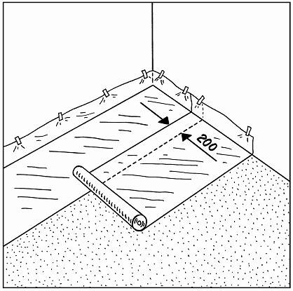 La barriera al vapore viene posata sovrapponendo 200mm in corrispondenza delle giunzioni e lungo le zone a contatto con i muri.