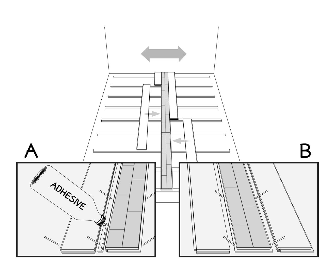 A. I due listoni centrali sono uniti da una falsa anima che deve essere incollata a uno dei listoni per tutta la lunghezza del listone.