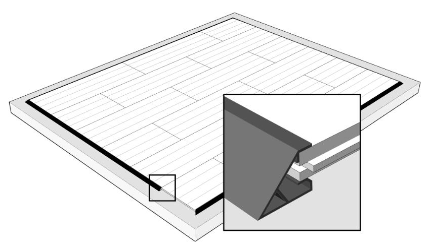 La rampa di transizione di supporto e protezione forma un bordo resistente lungo il perimetro del pavimento.