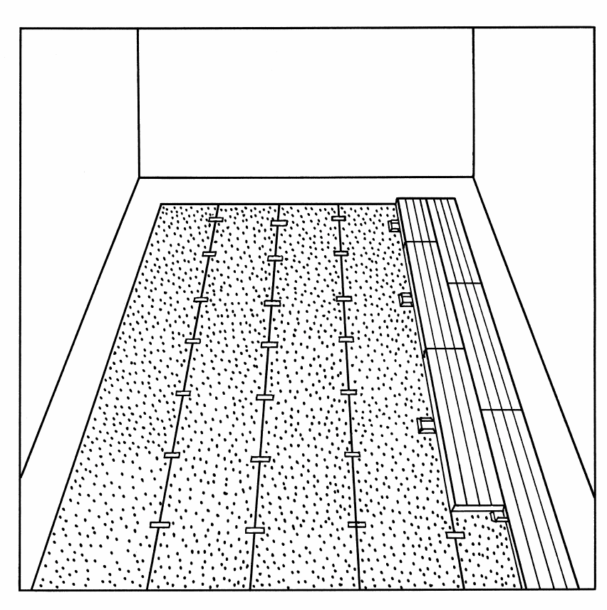 Quando si spostano attrezzature pesanti sul pavimento, ad esempio protezioni posteriori e piattaforme a forbice, è necessario utilizzare sempre 1 strato di “binari” in compensato da 18 mm per proteggere la superficie di gioco.